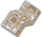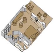 ![]() | Pinnacle Suite PS 126 m² vrátane verandy Veranda s teakovou podlahou 3. lôžko; veľká obývacia časť; 2 umývadlá, vírivá vaňa a extra sprcha; vlastný stereo systém; mikrovlnka a mraznička; veranda s vírivou vaňou. | ![]() |