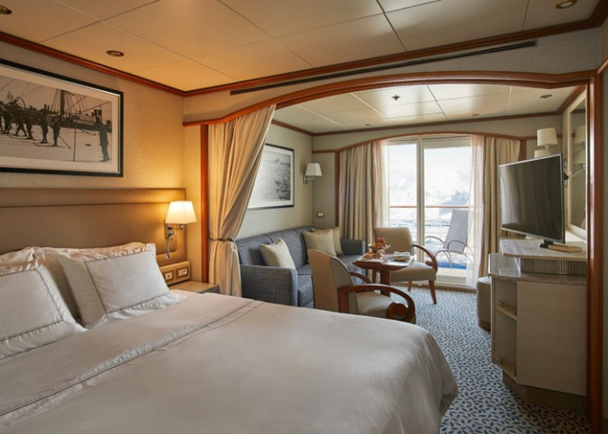 | DV - Deluxe Veranda Suite 27 m² (vrátane balkóna 4,5 m²). 5. paluba - stred. Max 2 osoby | 34 400 € 17 200 € za osobu | ||