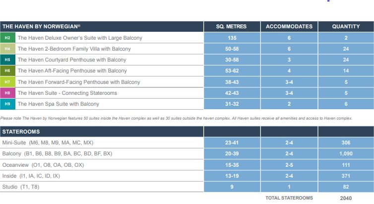 NCL Norwegian Encore kategórie kajút