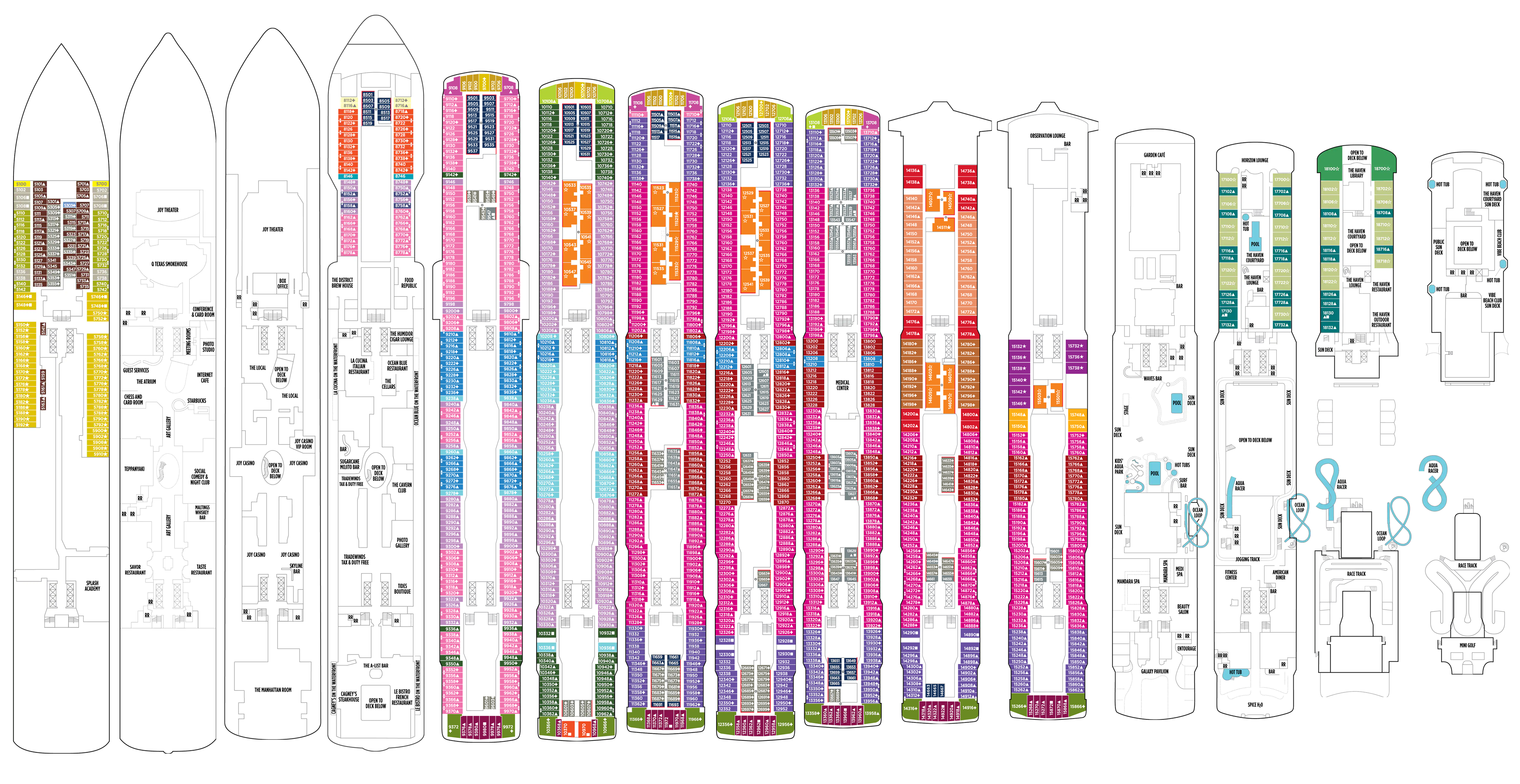 Spoznajte loď do detailu a získajte prehľad o všetkých palubách a ich vybavení na lodi.