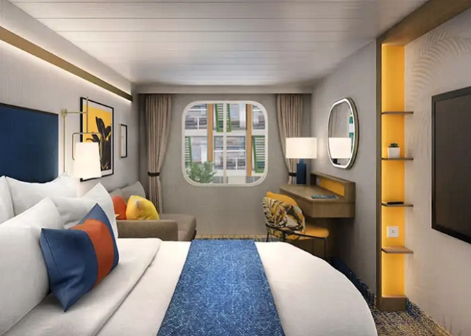| T5 - Vnútorná kajuta s oknom / Surfside Family 17 m². Neotvárateľné okno s výhľadom na štvrť Surfside. 8. paluba vpredu. Max 4 osoby. | 6 569 € 6 569 € za osobu | ||