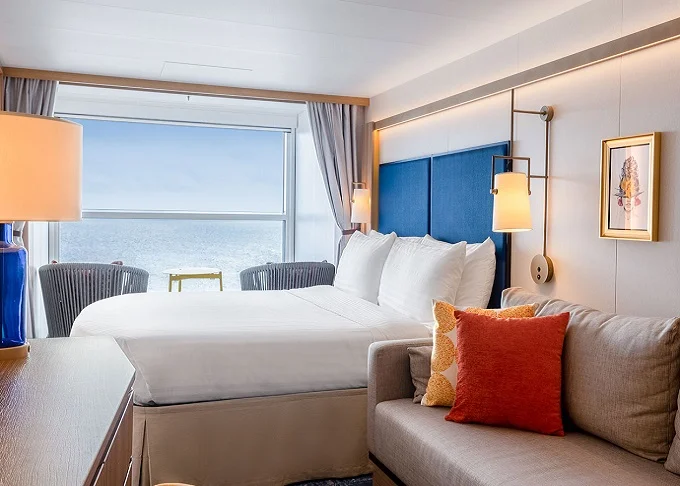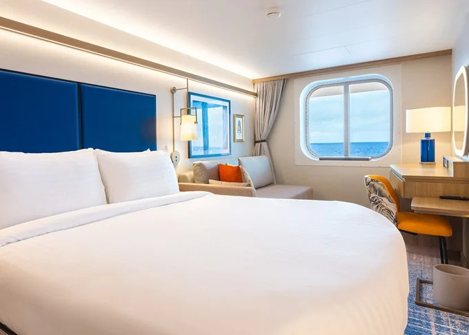 | L5 - Kajuta s oknom Panoramic Ocean View 24 m². Celoplošné neotvárateľné okno, výhľad na more. 14. paluba vpredu. Max 3 osoby. | 7 689 € 2 563 € za osobu | ||