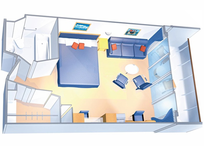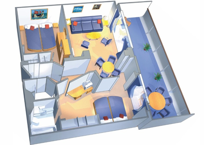 | VP - Ocean View Panoramic Suite (bez balkónu) 38 m². Panoramatické neotvárateľné okná. Max 6 osôb. Výhody Suite. | 3 411 € 3 411 € za osobu | ||